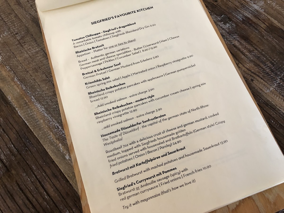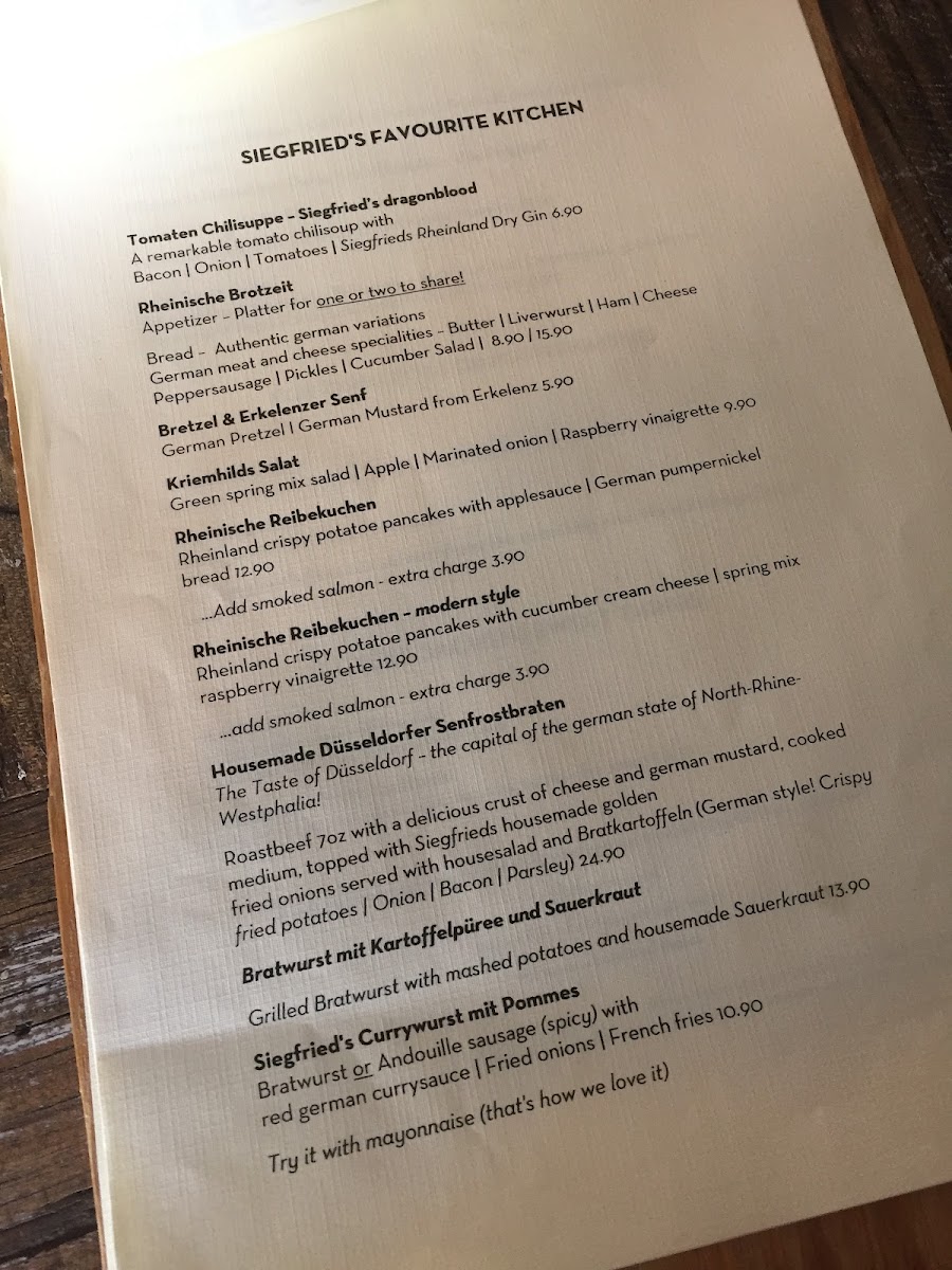 The taste of düsseldorf - the capital of the german state of north-rhine- westphalia! Roastbeef 7oz with a delicious crust of cheese and german mustard, cooked medium, topped with siegfrieds housemade golden fried onions served with housesalad and bratkartoffeln (german style! Crispy fried potatoes / onion / bacon | parsley)